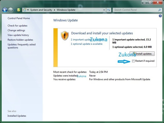 這張截圖來(lái)自于Windows 8 Build 6.2.7930.0.winmain_win8m2.110217-1825,在Windows Update中安裝重要更新之前,你還可以選擇“Restart if required”(如有需要立即重啟)。