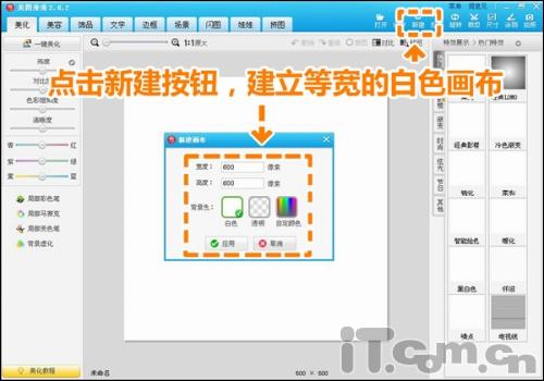 1.啟動(dòng)軟件后,先來(lái)做張白底方形圖章,點(diǎn)擊新建菜單,新建等寬正方形的白色畫(huà)布。至于尺寸可以按照需要自定義。