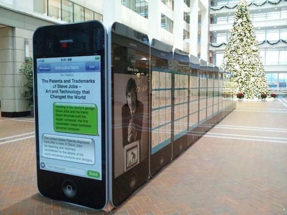 此次紀念展地點(diǎn)選在弗吉尼亞州亞歷山大市,美國專(zhuān)利商標局麥迪遜大樓中庭的發(fā)明家名人堂博物館內,由非盈利機構Invent Now構思。展覽包括30張iPhone形狀的展板,展板記錄了喬布斯的300多項專(zhuān)利和商標以及喬布斯的照片和個(gè)人信息。