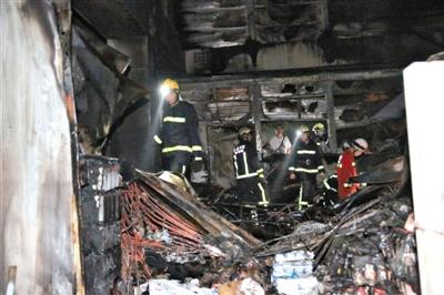 火災撲滅后,相關(guān)人員勘查現場(chǎng)