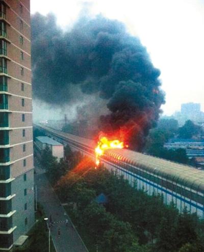 北京地鐵13號線(xiàn)聲屏障騰起數米大火 無(wú)人員傷亡(圖)