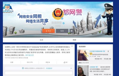 11月17日消息,首都網(wǎng)警官方微博稱(chēng),根據奇虎360公司舉報,北京市公安局已于11月13日將涉嫌制作、傳播蘋(píng)果系統惡意惡意軟件WireLurker的陳某、李某和王某抓獲。