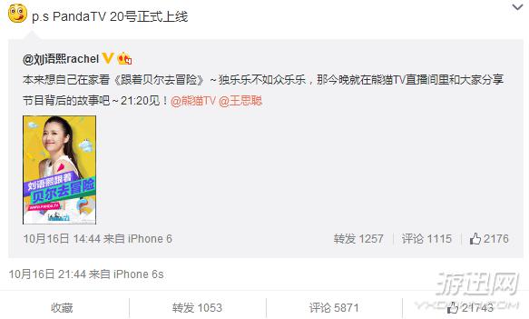 王思聰“熊貓TV”還未上線(xiàn)就已經(jīng)獲得了不少網(wǎng)友的關(guān)注,雖然可能大多數網(wǎng)友并沒(méi)有參與到內測之中,但光看早前曝光的明星陣容,網(wǎng)友已經(jīng)表示:老公,跟定你了!而日前,王思聰轉發(fā)劉語(yǔ)熙的微博,并且確認PandaTV將會(huì )在20號上線(xiàn)!