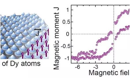 洛桑理工學(xué)院教授哈拉德·布魯尼帶領(lǐng)研究團隊在40K(零下233.15℃)低溫下,將金屬鏑原子沉積到金屬銥-石墨烯基底上,創(chuàng )造出具有穩定性的單原子存儲媒介。由于石墨烯與金屬銥之間具有晶格不匹配性,它們之間會(huì )形成云紋狀間隙,這種間隙性形狀導致鏑原子被吸附后,以每?jì)蓚€(gè)原子相距2.5納米的平均距離排列成高度整齊的矩陣,這是新裝置保持磁性高度穩定的一大原因。
