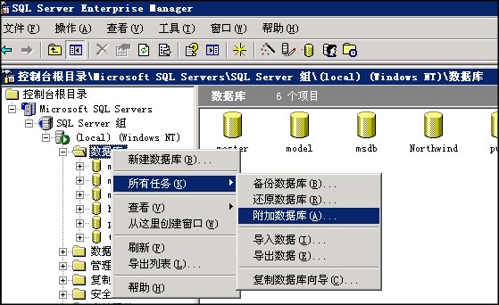 首先將您的數據庫mdf和ldf文件上傳到服務(wù)器的某個(gè)目錄(一般不要放在系統盤(pán),以免系統損壞造成數據丟失),比如d:\mssql目錄,并給該目錄mssqluser的完全控制權限。