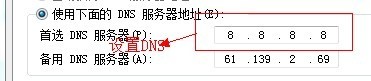 第三,   將DNS手動(dòng)設置為如:8.8.8.8 或其它。